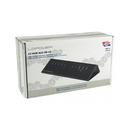 - USB hub koji omogućava povezivanje do sedam uređaja na jedan usb port i punjenje jos tri. - Napaja se preko USB porta, mogućnost napajanja i preko eksternog strujnog adaptera - Konekcija: 7 x USB 3.0, kompatibilan je sa USB 2.0 i USB 1.1, 3 x - USB za punenje drugih uredjaja (Portovi za punjenje nemamju mogucnost prenosa podataka)