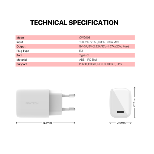 KUCNI PUNJAC FANTECH POWERGO CWD101 PD 20W BELI