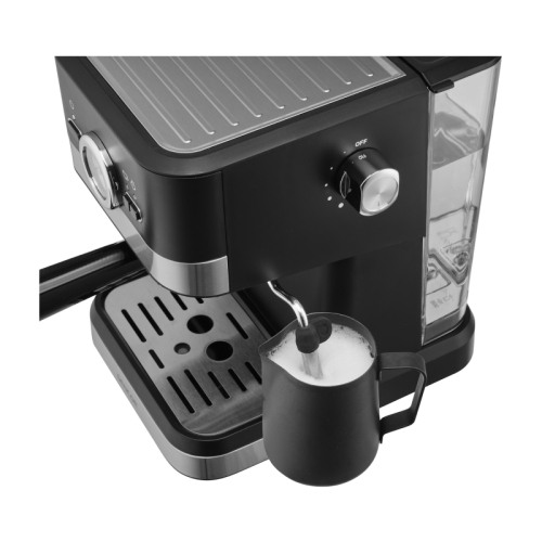 Karakteristike - Tip: Espresso aparat Snaga: 1.050W Filter: 2 filtera (za 1 i 2 šoljice) Podloga: Neklizajuća Fizičke karakteristike - Boja: Crna Dimenzije: 370mm x 285mm x 205mm Težina: 3.2kg Materijal: Filter od nerđajućeg čelika Kapacitet: 1.5l (posuda za vodu) Stanje: Nekorišćeno Ostalo - Dodatne funkcije: Funkcija vruće vode,Grejač šolje,PreBrew funkcija,Svetlosni indikator Napomena: Indikator nivoa vode,Okretni parni štapić,Pritisak 20 bara,Upotreba mlevene kafe Dodatna oprema: 2 filtera (1 ili 2 kafe),Dodatak za merenje,Držač filtera Ostalo: Lako za čišćenje Reklamacioni period - Reklamacioni period: 24 meseca