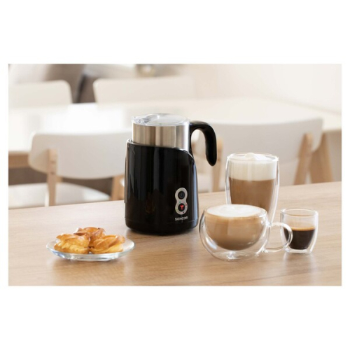 Karakteristike - Tip: Aparat za grejanje i penu od mleka Snaga: 650W Temperatura: Maksimalno zagrijavanje do 68 °C Fizičke karakteristike - Boja: Crna Dimenzije: 205mm x 170mm x 130mm Težina: 800g Kapacitet: 150ml (Pena od mleka) Stanje: Nekorišćeno Reklamacioni period - Reklamacioni period: 24 meseca