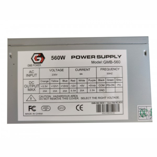 GMB-560-12 BEZ KUTIJE ** GEMBIRD NAPAJANJE 560W 12CM FAN, 20+4PIN, 4PIN 12V,2XSATA 2XIDE (1065)