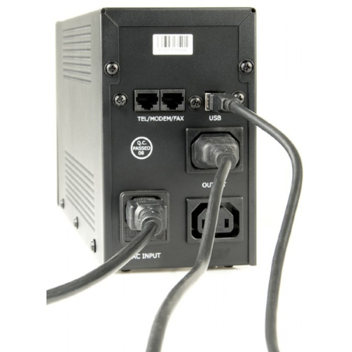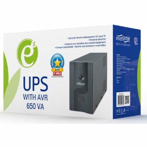 UPS with AVR, 650 VA ULTIMATE DEFENCE Up to 20 minutes backup power for your PC Prevents data loss Protects your sensitive and valuable equipment Compact and reliable - ideal for use at home or small office Uninterruptable 650 VA power supply for PC’s Automatic AC voltage regulation (AVR) Surge protected output sockets protect your equipment against harmful power surges, lightning strikes and short-circuits Audible and visual alarms LED status indication Internal battery with overcharge and over-discharge protection SpecificationsUPS type: line interactiveInput: AC 220 V ± 25 %, 50 Hz / 60 Hz ± 10 %Output: AC 220 V ± 10 %, 50 Hz / 60 Hz ± 0.5 % (on battery)Switching time: no more than 10 msBackup time: (8 to 20) min (depending on connected load)Battery: sealed lead-acid 12 V / 7AhCharge time: up to 12 hoursSockets: 1x C14 input, 2x C13 outputOperating conditions: 0°C to 40°C, at 10% to 90% humidity (RH non-condensing)Power: 650 VA (390 W)Dimensions: 320 mm x 160 mm x 95 mmProduct weight: 5.8 kgSystem requirementsIn order to work correclty, the connected load should be at least 5% of the maximum capacity of the UPS. For example, a 700 W UPS needs at least a connected load of 35 W to work. ups mustek apc^^