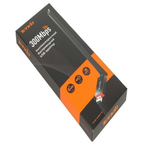 Tenda U6 Wireless N300 High Gain USB Adapter,The real 6 dBi ultra-long OFC high-gain antenna sets a record high in signal transmission and reception distances, allowing you to pick up wireless signals anywhere at home.Interface: USB2.0Dimension: 48mm*20mm*8mm(L x W x H)Antenna: 1* 6dBi external antennaWireless Standards: IEEE 802.11b, IEEE 802.11g, IEEE 802.11nFrequency: 2.400~2.4835GHzSignal Rate11b: Up to 11Mbps(dynamic)11g: Up to 54Mbps(dynamic)11n: Up to 300Mbps(dynamic)3G Access<20dBm (EIRP)Wireless Mode: Station Mode, SoftAP ModeWireless Security: 64/128-bit WEP,WPA-PSK / WPA2-PSK,WPA / WPA2Certification: CE, RoHSPackage Content: 1*Wireless Adapter U6,1*Resource CD,1* Install GuideSystem Requirement: windows10,Windows 8.1, Windows 8,Windows 7, ,Windows XP, Mac OS 10.7~10.12, LinuxEnvironment: Operating Temperature: 0?~40? (32?~104?)Storage Temperature: -40?~70? (-40?~158?)Operating Humidity: 10%~90% non-condensingStorage Humidity: 5%~90% non-condensingRelated Products: F3 / FH456 / A9