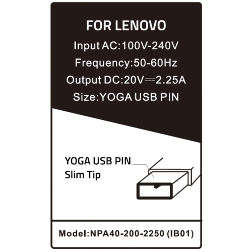 NPA40-200-2250 (IB01) ** GEMBIRD PUNJAC ZA LAPTOP 40W-20V-2.25A, USB YELLOW PIN (643 ALT=IB04)