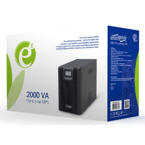 Izlaz cistog sinusnog talasaObezbediti rezervno napajanje - sprecava gubitak podatakaŠtiti vašu osetljivu i vrednu opremuSavršena podrška za instalacije solarnih panela i drugu osetljivu opremu koja zahteva cist sinusni unosKompaktan i pouzdan - idealan za kucnu i malu kancelariju-Neprekidno napajanje sa cistim sinusnim izlazom-USB interfejs-Automatska regulacija naizmenicnog napona (AVR)-Inteligentna zaštita od preopterecenja i kratkog spoja-Zvucni i vizuelni alarmi-LCD ekran i LED indikacija statusa-Unutrašnja baterija sa zaštitom od prekomernog punjenja i pražnjenjaTip: linijski interaktivniTalasni oblik: sinus, 5% izoblicenja pri linearnom opterecenju, PF> 0,8 (na bateriji)Ulaz: AC 220V ± 25%, 50Hz / 60Hz ± 10%Izlaz: AC 220V ± 12%, 50Hz / 60Hz ± 1% (AC 220V ± 5% u režimu pretvaraca)Vreme prebacivanja: u na 10 msRezervno vreme: 10 ... 30 minuta (zavisi od opterec´enja)Baterija: 151x65x94 mm, zatvorena olovno-kiselinska 12V / 9Ah, F2 terminali x3komVreme punjenja: do 12 satiUticnice: C14 ulaz, 4 izlaza C13; USB-BF konektorRadni uslovi: 0 ° C ~ 40 ° C, pri vlažnosti 10 ~ 90% RH bez kondenzacijeSnaga: 2000VA (1600W)Struja punjenja: do 1,2 ABuka: <50 dB na udaljenosti od 1 mDimenzije: 412x215x144mmTežina proizvoda: 18,5 kgFunkcija „hladnog starta“Sistemski zahteviDa bi ispravno radio, prikljuceno opterecenje treba da bude najmanje 5% maksimalnog kapaciteta UPS-a. Na primer, UPS-u od 700W je potrebno najmanje povezano opterecenje od 35W da bi radio.