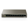 The Gigabit Uplink Port To Guarantee the Transmission Smooth and StableIt provides 8 10/100M RJ45 ports and 1 gigabit port. By using CAT5e twisted pairs, it can provide power and data transmission to APs, IP cameras, IP phones, and so on, fully loadedTransmission Distance up to 250mWith the extension technology,data can be transmitted through 250 meters cable which would be a cost-effective replacement for extenders and optical fibers.Excellent Lightning ProtectionThe switch supports 6 kV lightning protection for uplink port, protecting the switch from thunderstorms and making it more stable.What's Special for TEF1109TP-8-102W :Simple Port VLAN SetupWith VLAN Mode on , ports 1 to 8 are isolated from each other, enabling the switch to isolate broadcast storm, improving LAN security and data transmission.Network standards IEEE 802.3? IEEE 802.3u?IEEE 802.3x?IEEE 802.3af?IEEE 802.3atLED indicators:9* Link/Ack LED indicators1 * Power LED indicatorInterfaces:8*10/100 Base-TX Ethernet ports (Data/Power)1*10/100 Base-TX Ethernet ports (Data)Transmission mediaRecommended: CAT5/5e UTP or betterFan quantity N/ADimensions(L*W*H) 177.5mmx104.0mmx26.0mmLevel of protection:Lightning protection for ports: 6KVLightning protection for power: 6KVESD:Air discharge: ±10kVContact discharge: ±8kVForwarding modeStore-and-forwardSwitch capacity 2.6 GbpsPacket forwarding rate 1.34MppsBuffer 1.25MbMAC address table 2KJombo frame N/APoE budgetSingle port: AF: 15.4W, AT: 30WWhole device: 92WPower consumption /Input voltage100-240V AC 50/60Hz51V /2A DC(Power Adapter )MountingDesktop mounting: supportWall mounting: supportRack mounting : non-supportEnvironmentOperating Temperature: 0?~45?Storage Temperature: -40?~70?Operating Humidity: 10%~90% non-condensing Storage Humidity: 5%~90% non-condensingCertificatesFCC?CE?RoHSSoftwareFunctionDefault Mode: If Default mode is enabled, the device works as a general switch and all ports support 10/100Mbps auto-negotiation.VLAN Mode: If VLAN mode is enabled, VLAN isolation is enabled. Port 1-8 will be isolated respectively (10/100Mbps auto-negotiation), but can communicate with the Uplink port. And the delivery distance of powering and network data is up to 250m (10Mbps).