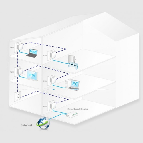 To build a network at home or office with minimum effort and cost, the Tenda 200Mbps Powerline Adapter P200 is your choice. In many cases, Ethernet is just not available in places where network connectivity is needed. However, almost every room at home or office has power circuitry, which can be used to extend network connections from your broadband router. Simply plug one P200 that links to a broadband modem/router into the power outlet in one room, and plug another P200 linking to a PC or any Ethernet device in the other, you can then easily and instantly create a powerline network of up to 200Mbps, 2X of a traditional switch or router, with the driving capability of up to 300 meters, 3X of Ethernet cable. Plus the QoS feature prioritizes your bandwidth intensive applications for lag-free experience. To build a network at home or office with minimum effort and cost, the Tenda 200Mbps Powerline Adapter P200 is your choice. In many cases, Ethernet is just not available in places where network connectivity is needed. However, almost every room at home or office has power circuitry, which can be used to extend network connections from your broadband router. Simply plug one P200 that links to a broadband modem/router into the power outlet in one room, and plug another P200 linking to a PC or any Ethernet device in the other, you can then easily and instantly create a powerline network of up to 200Mbps, 2X of a traditional switch or router, with the driving capability of up to 300 meters, 3X of Ethernet cable. Plus the QoS feature prioritizes your bandwidth intensive applications for lag-free experience.Speed Poweline 200MbpsStandard&Protocol HomePlugAVIEEE 802.3,IEEE 802./3uInterface 1*10/100M(Ethernet Interface)Modulation Technology OFDM,CSMA/CAButton1*Pair/ResetLED indicator1*Power1*Powerline1*EthernetPower Consumption Maximum: 2.8W (220V/50Hz)Minimum: 0.43W (220V/50Hz)Power Input AC 100~240V 50/60Hz 0.1AFrequency Powerline:2-30MHzDimension 53mm*53mm*27mmCertification CE,FCC,RoHsPlug Type EU,UK,USPackage Content AV200 Powerline AdapterQuick Installation GuideEthernet CableEnvironment Operating Temperature: 0°C ~ 40°C(32°F ~ 104°F)Storage Temperature: -40°F ~ 158°F (-40°C ~ 70°C )Operating Humidity:10% ~ 90% RH non-condensingStorage Humidity:5% ~ 90%RH non-condensing.Related Products PW201A