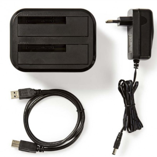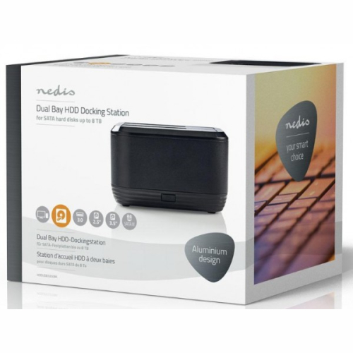Povežite dva hard diska cim ih izvadite iz kutija pomocu docking station-a Nedis® Dual Bai Hard Disk Drive (HDD).Pogodan za povezivanje dva 3,5” ili 2,5” HDD-a / SSD-a, aluminijumsko kucište, plasticni gornji i plasticni donji okvir dizajnirani su da osiguraju izvrsno rasipanje toplote i pružaju izdržljivost.SATA III konektor je kompatibilan sa starijim SATA I i II hardverom. USB Tipe-C ™ veza nudi prenos podataka velikom brzinom do 5Gbps za cak i najvece datoteke.Ako trebate da klonirate hard disk, ne može biti jednostavnije sa ugradenom funkcijom kloniranja.-Povratno kompatibilna SATA III veza-USB Tipe-C ™ veza za prenos podataka velikom brzinom do 5Gbps-Maksimalni kapacitet od 8 TB-Elegantno, moderno aluminijumsko kuc´ište - za efikasno i efikasno odvodenje toploteOperativni sistem Windows 10, 8, 7, Vista, 2000, MacNapajanje: 12 V 2,5 A