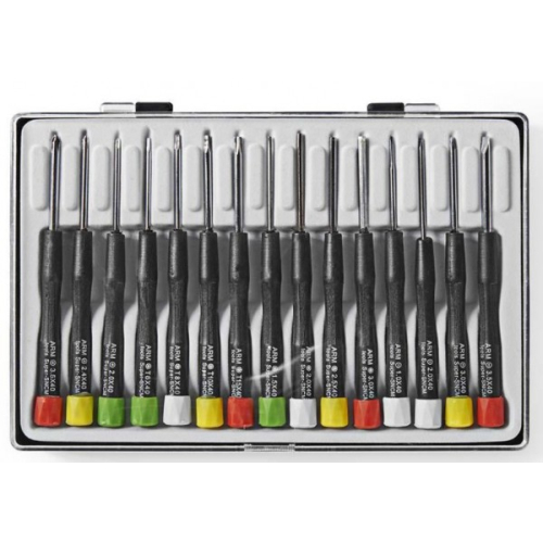 Precizni set odvijaca, sa najcešcim glavama vijaka u razlicitim velicinama. Opremljen zakretnim gornjim ruckama za tacnu primenu / upotrebu.Ravne širine odvijaca: 1,0 / 2,0 / 3,0 / 3,5 mmŠirina odvijaca sa PH poprecnom glavom: 2,0 / 2,5 / 3,5 mmŠirine Tork odvijaca: TX6, TX8, TX10, TX15Širina šestougaone odvijacke: 1,5 / 2,0 / 2,5 / 3,0 mmSadržaj paketa:4x ravni odvijac3x PH odvijac sa poprecnom glavom4x Tork odvijac4x šesterokutni odvijac