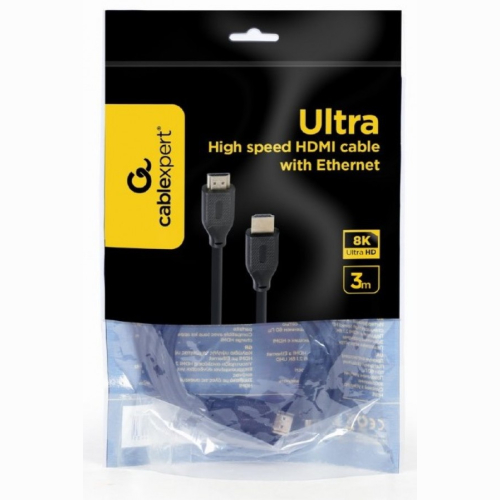 Ultra brzi HDMIPodržava 8K UHD rezoluciju na 60HzEthernet kanal-Ultra brzi HDMI kabl sa Ethernetom-Podržava HDMI 2.1 8K UHD rezolucije pri 60 Hz-Pozlaceni konektori za savršen kvalitet slike-Kompatibilan sa svim uredajima koji podržavaju HDMITip: Ultra velike brzine sa EthernetomPodrška za HDMI verziju: HDMI 2.1 (i sve prethodne verzije)Propusni opseg: do 48 GbpsPodržane rezolucije: sve rezolucije do 7680x4320 60 Hz maxPodržava bioskopski odnos širine i visine 21:9Podržava duboke boje, do 16 bita po kanaluPodržane funkcije: CEC, HEC, HARC, 3DKompatibilan sa: HDMI 2.1 nadoleKonektori: 2 x Tipa-A muški, pozlaceniMaterijal provodnika: bakarPrecnik kabla: 8 mmDužina: 3 m