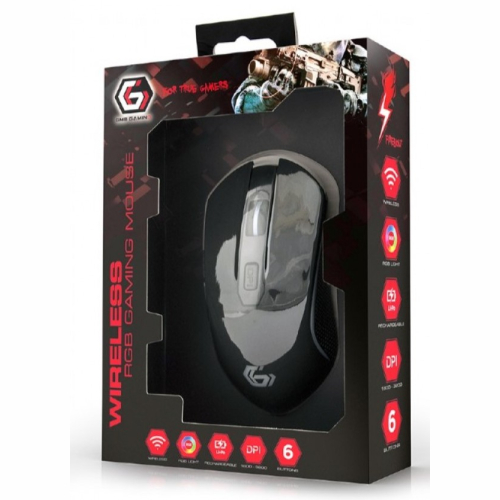 Punjiva litijum-jonska baterija za sate igranjaBežicni mis za neogranicenu slobodu kretanjaElegantno RGB pozadinsko osvetljenjeBežicni opticki miš za igre sa 6 tastera i USB nano-prijemnikomCPI dugme za brze promene rezolucije (1600-2400-3200 DPI)Višebojno RGB LED pozadinsko osvetljenjeAutomatski režim mirovanja radi uštede energije kada se miš ne koristiPunjiva litijum-jonska baterija (dobija se u pakovanju)Bežicna tehnologija: 2,4 GHzRadno rastojanje: do 10 mKlasa snage: RF snaga 3 dBm (max. EIRP)Tip unutrašnje antene; pojacanje antene u dBi (tipicno): 2 dBi ±1 dBiOpticka rezolucija: 1600-2400-3200 bira se pomoc´u dugmetaNapajanje: Li-Ion baterija, 400 mAh, 3,7 V V DC, do 20 mA (ne menjati, punite MicroUSB kablom)Nano prijemnik: USB 1.1 kompatibilan, težina 2 g, 6 x 14 x 18 mmMiš: dimenzije 129 x 67 x 42 mm, neto težina 97 g3-pozicijski prekidac: OFF - ON - ON sa RGB pozadinskim osvetljenjem2 bocna dugmeta: BACK i FORVARD za Veb pretraživac