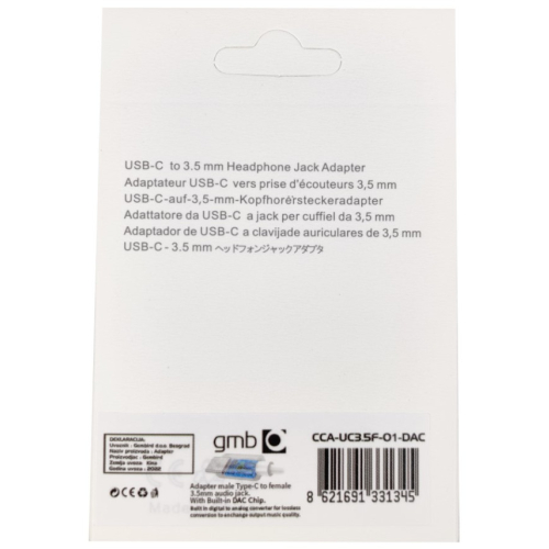 CCA-UC3.5F-01-DAC GEMBIRD HEADPHONE ADAPTER TYPE-C TO 3.5MM ADAPTER WITH RETAIL BOX FO