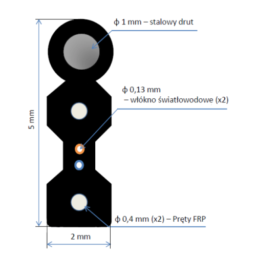Telcoline 2J FTTX FLAT DROP,G627ATelcoline 2F FTTX Flat Drop kabl je ravan, samonoseci kabl. Korišceno je jednomodno vlakno G.657A1 sa smanjenim radijusom savijanja od 10 mm. Korišcene su dve FRP armaturne šipke (fiber Reinforced Polimer) precnika 0,4 mm i dodatna celicna žica od 1 mm. Oklop je napravljen od LSZH (Low Smoke Zero Halogen) - otporan na UV zracenje. – Broj vlakana: 2– Tip vlakna: G.657A1– Boja školjke: crna– Dimenzije: 2×5 mm (debljina x širina)– Težina: 19,5 kg/km– Radna temperatura: -35 ° C ~ + 65 ° C– Minimalni radijus savijanja: 10 mm– Zatezna cvrstoca: 600N (kratkorocno) i 300N (dugotrajno)– Otpornost na lomljenje: 2200N / 100 mm (kratkorocno) i 1000N / 100 mm (dugotrajno)