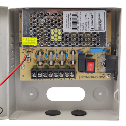 Napajanje stabilisano 12V 5A u metalnoj kutiji sa kljucem.Najcesce se koristi se za napajanje kamera kod video nadzora ili napajanje LED traka.Moguce povezivanje 4 kamera zasebno.Svaka od 4 kamera poseduje sopstevi osigurac.Maksimalno optercenje po grani je 1.5 A ali se grane mogu paralelno vezati i tako dobiti 3 A, 4.5 A itd.Moguca je korekcija napona za duze instalacije pomocu trimera-Sa eksternim C14 konektorom -Poseduje 2 rezervna osiguraca-Kvalitetno napajanje sa svim zasitamaMaterijal: Metal - plastificirano kuciste sa kljucemPakovanje: 1 komadStelovanje napona: DA - trimerUlazni AC napon: 100 - 240 VIzlazni DC napon: 10.6 - 15.2 VMax opterecenje: 5A - 60WMax. Broj izlaza: 4 grana po 1.5 AHladjenje: Prirodno