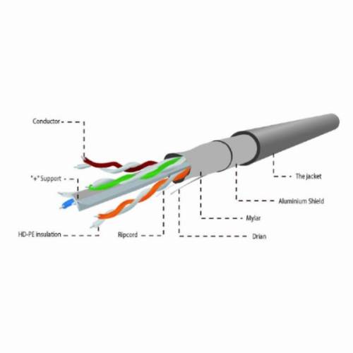 FTP oklopljeni LAN kablVisokokvalitetni CCA provodniciKategorija 6 cat.6 cat6LAN kabl sa upredenim parom (FTP) sa folijomMaterijal provodnika: 0,56 mm (AWG23) cvrsti CCA (30%)Standardna legura bakar (30%) -aluminijum CCAPun presekDužina: 305 mPakovanje: rolnaBoja: sivaOtpor provodnika (max): 250 ohm/ 1000mOtpor izolacije (min): 5M ohm/kmKapacitet par-zemlja: < 330PF / 100mKarakteristicna impedansa: < 100 Ohm (+/- 15)Temperatura transporta i skladištenja: 0 - 60 stepeniRadna temperatura: -20 - 70 stepeniRadno rastojanje: <50m