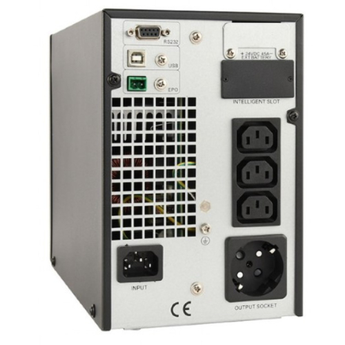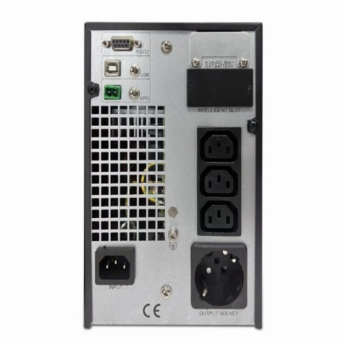Štiti važne podatke od nestanka strujeŠtiti vrednu opremuŠtiti korisnikeUPS tipa na mreži: dvostruka konverzija napona bez prebacivanja napajanjaUSB kontrolni interfejsLCD displejZaštita od kratkog spojaKompatibilan sa generatorima bilo koje markeZaštita od prenapona, udara i gromaZvucni i vizuelni alarmiZaštita od preopterecenja i prekomernog pražnjenjaTip UPS-a: onlajn, cisti sinusni talasUlaz: 220V AC ± 25%, 50Hz / 60Hz ± 10%Izlaz: 220V AC ± 1%, 50Hz / 60Hz ± 0,5% (na bateriju)Faktor izlazne snage: > 0,99Izlazna efikasnost pretvaraca (otporno opterecenje): 85%, bilo koji tip opterecenja je dozvoljenVreme prebacivanja: nulaVreme-Backup: 8...20 min (zavisi od opterecenja)Baterija: 151 x 65 x 95 mm, zapecacena olovno-kiselina 12 V / 9 Ah / 2,35 kg x2kom, 24 VDCVreme punjenja: 90% kapaciteta se obnavlja za 3 sataSpoljašnji konektori za baterije: daUticnice: ulaz IEC C14, izlazi: 1x schuko uticnice + 3x IEC uticniceInterfejs komunikacija: USB; opcioni slotovi: RS485 / suvi kontakti / SNMPRadni uslovi: 0°C~40°C, pri vlažnosti 10~90% RH bez kondenzacijeBuka: < 45 dB (na udaljenosti od 1 metar)Snaga: 1000VA (900W)Dimenzije: 144 x 312 x 216 mmTežina proizvoda: 11 kgFunkcija "hladnog starta".Sistemski zahteviDa bi radio ispravno, prikljuceno opterecenje treba da bude najmanje 5% maksimalnog kapaciteta UPS-a. Na primer, UPS od 700 W treba najmanje povezano opterecenje od 35W da bi radio.