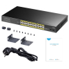 - IEEE 802.3af/802.3at standard usaglašen- Ukupan budžet za PoE napajanje od 300 W, do 30 W po portu- 24 k GbE PoE+ port i 2 k SFP port- CCTV režim podržava daljinsko napajanje i prenos podataka do 250 metara- VLAN režim podržava 24 POE+ porta izolovana jedan od drugog- LED indikatori za mrežnu dijagnostiku-19-inčno metalno kuc´ište, unutrašnji dizajn napajanjaPoE standard: IEEE802.3, IEEE802.3u, IEEE802.3ab, IEEE802.3z, IEEE802.3k, IEEE802.3af, IEEE802.3atMrežni mediji (kabl) 10 BASE-T: UTP kategorija 3, 4, 5 kabl (=100m)100 BASE-TKS: UTP kabl kategorije 5 (=100m)1000 BASE-T: UTP kategorija 5e kabl (=100m)1000 BASE-Ks: MMF ili SMF SFP modulTabela MAC adresa: 8K, automatsko učenje, automatsko starenjeRežim prenosa: Store-and-ForwardFrame Forvard Rate-10 Base-T: 14881pps/port-100 Base-TKS: 148810pps/port-1000 Base-T/Ks: 1488095pps/portKapacitet prebacivanja: 56GbpsDimenzije (D*Š*V): 440 * 207 * 44 mmVentilator: 2/bez ventilatoraUlazna snaga: AC: 100~240V, 50/60HzPoE port: Port1~24PoE napajanje na RJ45: režim A 1/2(-), 3/6(+)PoE izlazna snaga: 32 W (maksimalno)PoE budžet napajanja: 300 WRadna temperatura: 0°C ~ 40°C (32°F ~104°F)Temperatura skladištenja: -40 °C ~ 70 °C (-40 °F ~158 °F)Radna vlažnost: 10% ~ 90% bez kondenzacijeVlažnost skladištenja: 5% ~ 90% bez kondenzacije