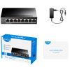- Usklađen sa standardima IEEE 802.3, IEEE 802.3u, IEEE802.3k i IEEE 802.3ab- Osmoportni 10/100/1000Mbps Auto-Negotiation, Auto-MDI/MDIKS portovi obezbeđuju pametno prebacivanje između 10Mbps, 100Mbps i 1000Mbps hardvera- Arhitektura komutacije bez blokiranja omoguc´ava prosleđivanje i filtriranje paketa pune brzine- Skladišti i prosledi metod prebacivanja- Podržava automatsko učenje i starenje 16K MAC adresa- Standardna konfiguracija: Osmoportni 10/100/1000M RJ-45 adaptivnih portova- Kapacitet prebacivanja: 16Gbps- Protok: 11.9Mpps- Bafer paketa: 2.5M- MAC adresa: 1K- Jumbo okvir: 2K- Režim prenosa: Čuvanje i prosleđivanje- MTBF: 100000 satiMrežni protokolIEEE802.3 (10Base-T)IEEE802.3u (100Base-TKS)IEEE802.3ab (1000Base-TKS)IEEE802.3k (kontrola protoka)Industrijski standardEMI: FCC Deo 15 CISPR (EN55032) klasa AEMS: EN61000-4-2 (ESD)?EN61000-4-4 (EFT)Šok: IEC 60068-2-27Slobodni pad: IEC 60068-2-32Vibracije: IEC 60068-2-6