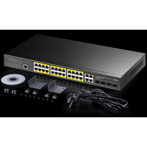 - 24 gigabitna POE porta, 4 gigabitna kombinovana porta, 1 konzolni port- Kompatibilan sa IEEE802.3at i IEEE802.3af- Eternet port podržava 10/100/1000M adaptivne i POE funkcije- Dizajn bez ventilatora, prirodno hlađenje, montaža u stalak od 1U- Podrška za VEB, TELNET, CLI, SSH, SNMP, RMON upravljanje- Podržava POE upravljanje napajanjem- Zaštita od udara gromaInterfejs: 24 x 10/100/1000M POE porta + 4 x gigabitna SFP/TP kombinovana porta + 1 x konzolni portMrežni protokoli:IEEE 802.3IEEE 802.3uIEEE 802.3ab/ad/az/af/atIEEE 802.3kIEEE 802.1kIEEE 802.1p, KoSIGMP Snooping- PoE standard: IEEE802.3at (30V) i IEEE802.3af (15.4v)- PoE kompatibilnost: IEEE 802.3af/at adaptivni- Izlaz POE porta: DC48-55V- Dodela pinova za napajanje: napajanje preko rezervnih parova 1/2(+) i 3/6 (-)- Zaštita od groma- Opšti režim 6KV,- Diferencijalni režim 4KV, ESD 15KVMrežni prenosni medij:10BASE-T: Cat3, 4, 5 UTP (= 100 m)100BASE-TKS: UTP (=100 m) iznad Cat51000BASE-TKS: UTP (=100 m) iznad Cat5Napajanje:Ulazni napon mašine: AC110-240VIzlaz: DC52V 5.76AUkupna snaga: 300VVeličina proizvoda (D׊×V): 445 mm × 285 mm × 45 mmVeličina pakovanja (D׊×V): 470 mm × 350 mm × 120 mm