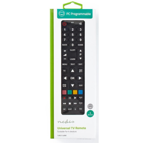 -Daljinski upravljac koji se lako programira - za jednostavno i brzo podešavanje-Mekana dugmad - za udobnost-Može da kontroliše cetiri uredaja - ukljucujuc´i televizore, DVD-ove, set-top boksove, video-rekordere i DVB-T prijemnikeDaljinski upravljac koji traje ceo život. Namenski daljinski upravljac koji se može programirati sa vašeg racunara, koji zadovoljava sve korisnike koji žele da upravljaju svojim uredajem pomoc´u inteligentnog daljinskog upravljaca sa svim funkcijama originala. Ovaj daljinski upravljac je pogodan za 4 uredaja i omoguc´ava zamenu originalnih daljinskih upravljaca. Zamenjuje preko 100.000 originalnih daljinskih upravljaca za TV, VCR, DVD, DVB-T i ima vec´inu funkcija originala.Ovaj Nedis univerzalni daljinski upravljac može se u potpunosti konfigurisati prema vašim potrebama - pogodan za upravljanje bilo koja cetiri uredaja u vašoj kuc´i (ukljucujuc´i televizore, DVD-ove, set-top bok-ove, video-rekordere i DVB-T prijemnike).Lako je preuzeti kontrolu nad cetiri uredaja pomoc´u ovog programabilnog univerzalnog daljinskog upravljaca. Ubacite 2x AAA baterije (nisu sadrzaj pakovanja) i brzo podesite kontrolu po želji.Važno za instaliranje softvera kako bi ispravno funkcionisao:a) Molimo prvo deinstalirajte staru verziju softvera, ako je stara verzija softvera vec´ instalirana.b) Novi korisnici mogu direktno preuzeti i instalirati novi softver.Boja: crnaMaterijal: ABS / GumaTip izvora napajanja: BaterijaUlazni napon: 3 V DCTip baterije: AAATehnologija prenosa: InfracrvenaPogodni uredaji: TV / DVB-S / S2 prijemnik / MultimedijaFunkcije daljinskog upravljaca: Clear Lay-outUlaz koda: ProgramabilanTip daljinskog upravljaca: UniverzalniBroj uredaja: 4 uredajaPotrebne baterije (nisu ukljucene): 2x AAA/LR03