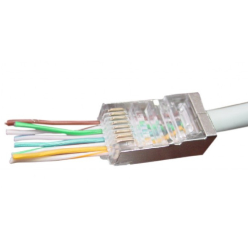 Ovaj inovativni RJ45 8P8C konektor pojednostavljuje zakrivljene zavojne spojeve omogućavajući da se žice ubacuju kroz konektor potpuno i spolja. Ovo omogućava korisnicima da lako proveravaju pravilan redosled provere. Budući da ovo takođe omogućava da čvrsto povučete konektor preko kablovske jakne, ona se još čvrsto nalazi i na zadnjoj strani konektora. Ovo smanjuje rastojanje između okretanja žice i kontakata i poboljšava performanse.Nema više suvišnog krimpovanja! -Modularni 8P8C RJ45 utikač-Praktični prolazni dizajn za lako presovanje-krimpovanje-Pozlaćeni 2-viljuški unutrašnji kontakti za čvrste i jezgrene LAN kablove-Pogodno za provodnike max. 24 AWGStruktura: 8P8CSildovan: Da (FTP)Težina: 170g (100kom)