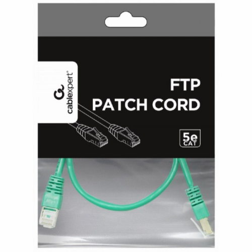 FTP Cat5e Patch kablSavršena vezaZašticena folijom - za pouzdanu vezuPozlaceni kontakti-Patch kabl zašticen folijom, 8P8C-50u" pozlaceni kontakti-Molded strain reliefsPatch kabl Poboljšana kategorija 5 FTP (zašticeni/sildovan)Dužina: 0,5mBoja: zelenaStruktura: AWG 26 (žica 0,15mm), CCAHDPE izolacija žice: 0,85mmSa LDPE punilom: ne koristi seSa poliesterskom trakomSa aluminijumskom folijomCrevo: 0,12 mm CCAPVC spoljna izolacija: 5,0mmRad do 100 MHzUskladenost sa standardima ANSI / TIA / EIA-568B