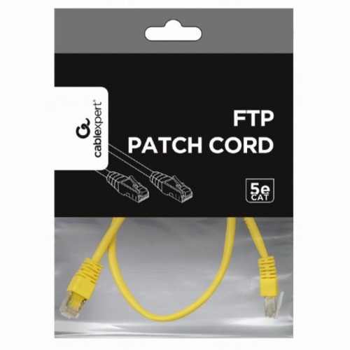 FTP Cat5e Patch kablSavršena vezaZašticena folijom - za pouzdanu vezuPozlacceni kontakti-Patch kabl zašticen folijom, 8P8C-50u" pozlaceni kontakti-Molded strain reliefsPatch kabl Poboljšana kategorija 5 FTP (zašticeni/sildovan)Dužina: 0,5mBoja: zutaStruktura: AWG 26 (žica 0,15mm), CCAHDPE izolacija žice: 0,85mmSa LDPE punilom: ne koristi seSa poliesterskom trakomSa aluminijumskom folijomCrevo: 0,12 mm CCAPVC spoljna izolacija: 5,0mmRad do 100 MHzUskladenost sa standardima ANSI / TIA / EIA-568B