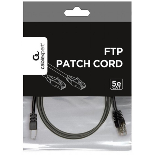 FTP Cat5e Patch kablSavršena vezaZašticena folijom - za pouzdanu vezuPozlacceni kontakti-Patch kabl zašticen folijom, 8P8C-50u" pozlaceni kontakti-Molded strain reliefsPatch kabl Poboljšana kategorija 5 FTP (zašticeni/sildovan)Dužina: 1mBoja: crnaStruktura: AWG 26 (žica 0,15mm), CCAHDPE izolacija žice: 0,85mmSa LDPE punilom: ne koristi seSa poliesterskom trakomSa aluminijumskom folijomCrevo: 0,12 mm CCAPVC spoljna izolacija: 5,0mmRad do 100 MHzUskladenost sa standardima ANSI / TIA / EIA-568B