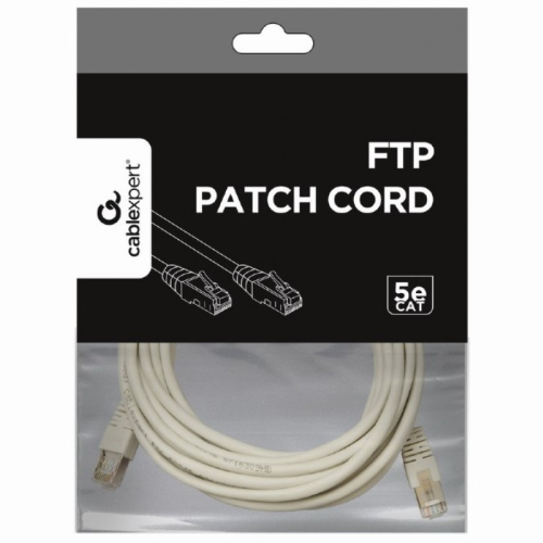 FTP Cat5e Patch kablSavršena vezaZašticena folijom - za pouzdanu vezuPozlacceni kontakti-Patch kabl zašticen folijom, 8P8C-50u" pozlaceni kontakti-Molded strain reliefsPatch kabl Poboljšana kategorija 5 FTP (zašticeni/sildovan)Dužina: 5mBoja: sivaStruktura: AWG 26 (žica 0,15mm), CCAHDPE izolacija žice: 0,85mmSa LDPE punilom: ne koristi seSa poliesterskom trakomSa aluminijumskom folijomCrevo: 0,12 mm CCAPVC spoljna izolacija: 5,0mmRad do 100 MHzUskladenost sa standardima ANSI / TIA / EIA-568B