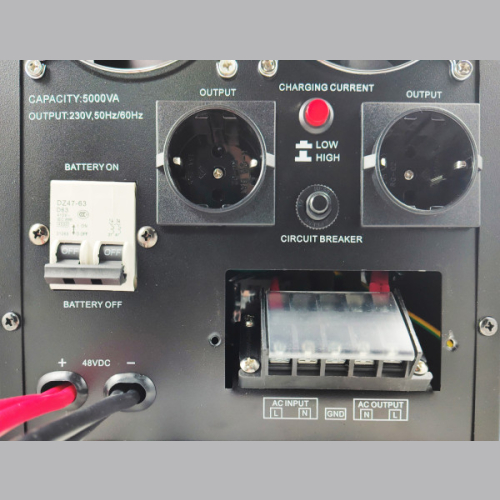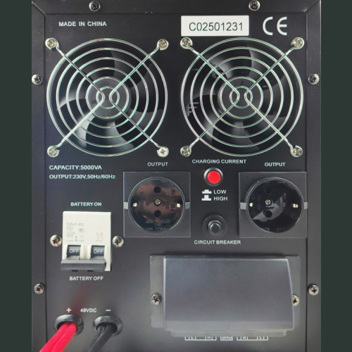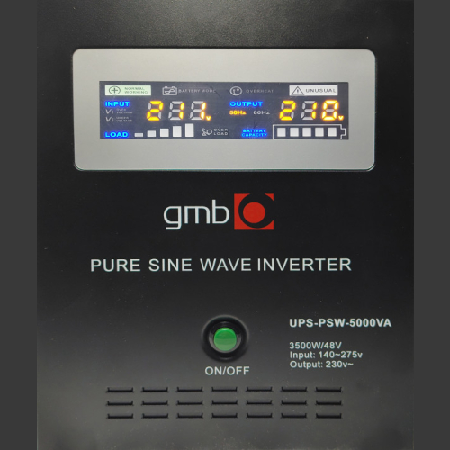 Sinusni UPS uređaj Gembird Long sa produženom autonomijom 5000VA-3500W, 48V-220VGembird UPS uredjaj je uredjaj vrhunskih performansi i kvaliteta. Oznaka LONG u nazivu modela oznacava posebnu Long-run seriju koja omogucava neprekidan rad uredjaja pri punom opterecenju gotovo neprekidno. LONG modeli u sebi ne poseduju baterije i imaju snazan punjac koji moze da opsluzuje i puni baterije od 200Ah pa i vise. Ovaj model ima snagu od 3500W i vrsi konverziju sa 48V na 220V. Cist sinusoidni oblik daje ovom uredjaju mogucnost da napaja svaki uredjaj. Kvalitetne komponente i energetski sklopovi su lako izmenjljivi a graficki displej u boji jasno pokazuje status uredjaja kao i to da li je korekcija napona aktivna ili ne, status i napunjenost baterije kao i nivo opterecenja. Primena ovog uredjaja je vrlo siroka. Idealno je resenje za sisteme video nadzora gde je potrebno imati dugacku autonomiju. Autonomija uredjaja zavisi od kapaciteta baterije a u zavisnosti od zelje korisnika iz tablica odabiramo kapacitet baterija. Ovaj uredjaj na zalost NE MOZE da radi sa odredjenim kotlovima na pelet koji imaju napojnu jedinicu resenu na bazi tiristora. Korisnici koji su nam potvrdili da uredjaji kod njih rade besprekorno imaju kotlove sledecih proizvodjaca: ALFA PLAM-COMMO, KEPO, PELET-METALAC.UPS-PSW-5000VA GMB Long Pure Sine Wave Inverter 3500W 220V-48VModel: TowerNazivna snaga: 5000 VAMax opterecenje: 3500 WPower factor out: 0.7LCD displej: Da-u bojiBaterija: Stoji van uredjaja-prodaje se bez baterijeIzlazna uticnica: 2 x šuko + 1 x klemeIzlazni sinusni oblik: Skoro idealni sinusni oblikSnaga punjaca: Izbor pomocu dugmeta 10A ili 15A-48VHladan start: DaDuzina napojnog kabla: NemaDuzna kabla za baterije: 0.5mGarancija: 24 meseca