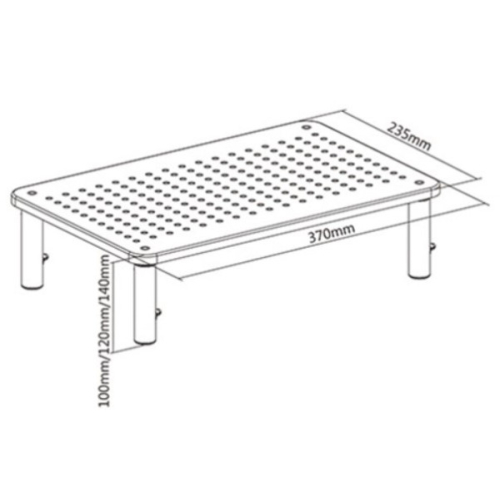 Savršeno postavite ekran da biste smanjili naprezanje vrata i ociju-Stalak za monitor/laptop podesivo po visini-Kompaktan dizajn u obliku pravougaonika, savršeno se uklapa na bilo koji sto-3 podešavanja visine za optimalnu visinu gledanjaMaterijal: celik, plastikaPovršinska obrada: praškasti premazBoja: crna fine tekstureDimenzije: 370x235x120 mmPrimenljivi uredaji: laptop, monitorRaspon visine: 100/120/140 mmKapacitet težine: 20 kgNeto težina: 1,1 kg