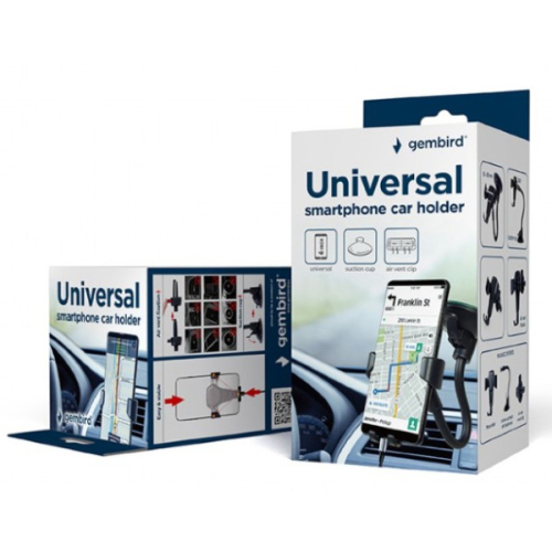 2-u-1: može se koristiti sa usisnom cašom ili fiksacijom za ventilaciju-Dugacak fleksibilan vrat-Univerzalni automobilski držac za pametni telefon-Podesiva širina za upotrebu sa telefonima širine od 65 do 85 mm-Vazdušna caša sa fleksibilnim vratom za fiksiranje na bilo koji prozor automobila-Držac za klip za ventilaciju za lako pricvršc´ivanje na ventilacioni otvor automobilaMaterijal: ABSNeto težina: 0,13 kgDužina vrata: 170 mmPodesiva širina: 65 - 85 mm