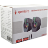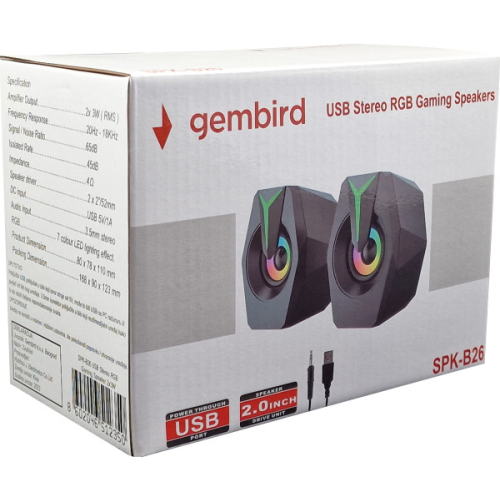 Odlicni stereo 2.0 zvucnici modernog dizajnaUkupne snage od 6 W za cist i jasam zvukFrekventni opseg u rasponu od 20Hz do 18kHzJednostavno povezivanje pomocu USB i DC konektoraRGB: 7 LED boja Snaga: 2 x 3WZvucnik: 2 X 2" / 52mmFrekvencijski raspon: 20Hz - 18kHzOstalo: Odnos signal / šum (SNR): 65 dBImpedansa: 4ohmsPovezivanje: USB 5V/1A, DC konektorDužina kabla: 1 m Konektori: 3.5mm + USBDimenzije (ŠxVxD) 80x78x110mmPakovanje (ŠxVxD) 168x90x123mmalternativa za Microlab