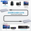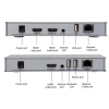 Model: DEX-HDMI-KVM462 Gembird Consumer Electronics 200m Video Transmitter Receiver Extender Over CAT5e/6 Lan Network Hdmi Usb Kvm Extender Hdmi ExtenderHDMI EkstenderRastojanje proširenja do 200mRezolucija: 480p, 720p, 1080pFrekvencija uzorkovanja: 32 kHz, 44,1 kHz i 48 kHzIR daljinski upravljac 38 kHz; NECPotrošnja energije: 3W za hdmi pošiljalac i prijemnikAdapter za napajanje DC 5V/1A200M HDMI IP Ektender je zasnovan na TCP/IP standardu. Prenosi vaš HD ekran visoke rezolucije do 200 metara od vašeg DVD ili racunarskog izvora pomocu jednog CAT5e/6 kabla. U isto vreme, prenosi HDMI audio i video izvor u režimu od tacke do tacke, od tacke do više tacaka, od više tacaka do više tacaka i u režimu kaskadne veze.-Podržava HDCP1.4-Režim dekodiranja MJPEG-Podržava režim od tacke do tacke, režim od jedne tacke do više tacaka i režim kaskadne veze.-802.3 Ethernet standard.-Podržava IR daljinski upravljac-Podržava USB proširenje za miš i tastaturu.-Dizajn cistog hardvera, plug and play, bez potrebe za dodatnim softverom.Rezolucije: 480p,720p,1080pAudio : Brzina uzorkovanja: 32 kHz, 44,1 kHz i 48 kHz kodIR daljinski upravljac: 38 KHz;NECAdapter za napajanje: DC: 5V/1AMaksimalna potrošnja energije: HDMI pošiljalac: 3W HDMI prijemnik: 3WDimenzije: 163x87x24mmTežina: 474 g Radna temperatura/vlažnost: 0?-45?/10%-80%RH (bez kondenzacije)Temperatura skladištenja/vlažnost: -10?-70?/5%-90%RH (bez kondenzacije)Povezivanje i rad:1) Povežite HDMI izvor (kao što je DVD, PS3, STB) na “HDMI IN” predajnika pomocu HDMI kabla.2) Povežite “HDMI izlaz” prijemnika na HDTV ekran pomocu HDMI kabla.3) Povežite predajnik i prijemnik sa jednim cat5e/6 kablom (preporucuje se). Najdalje rastojanje je 200M.4) Povežite „IR prijemnik“ u „IR-RX“ port na prijemniku i „IR predajnik“ u „IR-TX“ na predajniku i uverite se da IR predajnik cilja na IR port izvora6) Povežite napajanje od 5V na uredaj i ukljucite uredaj za video prenos. Kada su RX i TX povezani preko mrežnog kabla, jedan indikator treperi. Kada je signal povezan, jedan indikator na mrežnom portu svetli.