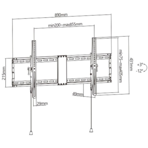 Postavite ekran savršenoLagan i nagibni dizajn-Nosac za LCD ekran od celika za teške uslove rada-Podržava vecinu LCD televizora od 43" - 90".*Automatske opružne brave sa kablovima za brzo otpuštanje za jednostavnu instalaciju-VESA kompatibilan, max. 800x400mm-Omogucava nagib do 12 stepeni-Udaljenost od zida: 49 mm-Ukljucuje sve potrebne materijale za ugradnjuMaterijal: celikPovršinska obrada: praškasti premazBoja: crna fine tekstureOdgovara velicini ekrana: 43" - 90"Kompatibilno sa Vesa: 200x200, 300x200, 400x200, 300x300, 400x300, 400x400, 600x400, 800x400mmKapacitet težine: 70kgProfil: 49mmOpseg nagiba: +3° ~ -12°Montaža: cvrsti zid, dupli klin (406mm/450mm/600mm)Neto težina: 2,68 kg
