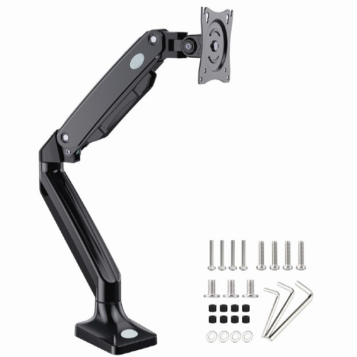 Postavite ekran savrsenoLagan i nagibni dizajn-Montaza za sto sa jednom rukom za monitor-Ruka sa punim pokretom se rotira, produzava i uvlaci, naginje da bi promenila uglove citanja i omogucava rotiranje ekrana iz pejzaznog u portret rezim itd.-Omogucava lako ergonomsko pozicioniranje za smanjeno opterecenje-Radi sa skoro svim LCD monitorima (max. 35")-Izdrzljiva podesiva gasna opruga pogodna za monitore od 3-10kg-VESA kompatibilan (100 x 100 mm i 75 x 75 mm)-Snazna stezaljka za radni sto ili otvor za lako i sigurno pricvrscivanje na vas stoMaterijal: aluminijum i celikVelicina ekrana: 17 - 35"VESA: 75x75-100x100mmNagib: ±50°Rotacija ekrana: 360°Duzina ruke: 515 - 587 mmVisina ekrana: 155 - 470 mmFiksiranje stola: stezaljka ili uticnicaKapacitet tezine: 10 kg / 22,2 lbs