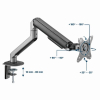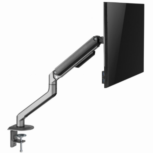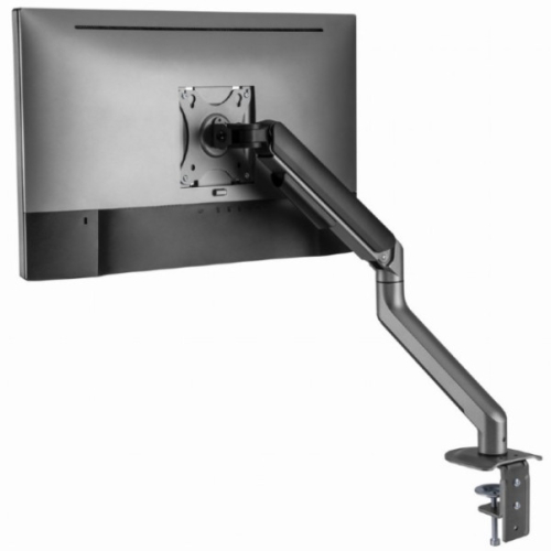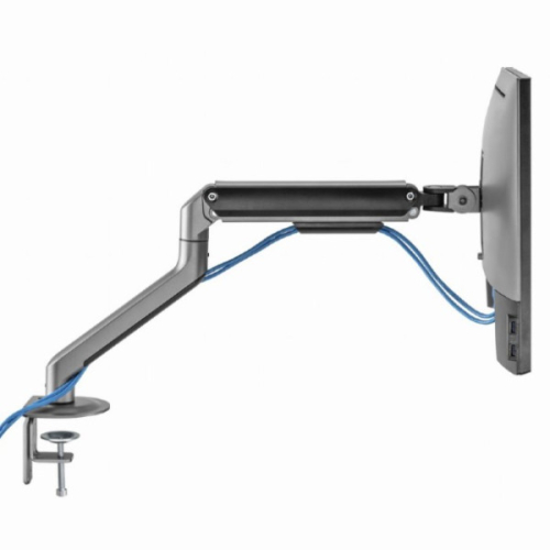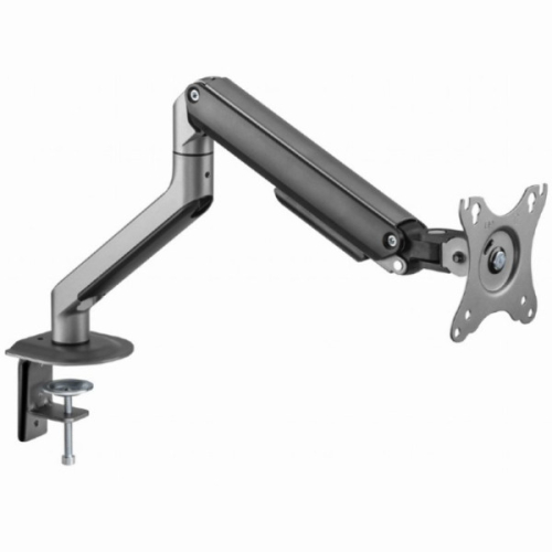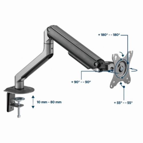 Podesiva ruka monitora postavljena na sto, svemirsko sivaPostavite ekran savrsenoLagan i nagibni dizajn-Montaza za sto za monitor sa jednom rukom za monitor-Ruka se rotira, izvlaci i uvlaci, naginje da promeni uglove citanja i omogucava rotaciju ekrana iz pejzaznog u portret rezim itd.-Omogucava lako ergonomsko pozicioniranje za smanjeno opterec?enje-Radi sa skoro svim LCD monitorima (max. 32")-Izdrzljive podesive gasne opruge pogodne za monitore od 2-9kg-Snazna stezaljka za radni sto ili otvor za lako i sigurno pricvrscivanje na vas sto-Ugradeno upravljanje kablovima za organizovan i uredan radni prostor-VESA kompatibilan (100x100 mm i 75x75mm)Materijal: aluminijum, celik, plastikaPovrsinska obrada: praskasti premazBoja: svemirsko sivaPrilagodite velicinu ekrana: 17~32"Kapacitet tezine: 2 ~ 9 kgVESA kompatibilan: 75x75, 100x100 mmOpseg nagiba: +55 ° ~ -55 °Opseg okretanja: +90 ° ~ -90 °Rotacija ekrana: +180 ° ~ -180 °Instalacija: Stezaljka za sto ili otvorMax. Debljina stola: Stezaljka: 10 ~ 80 mm, Ulozak: 10 ~ 40 mmUpravljanje kablovima: DaNeto tezina: 2,2 kgDimenzije: 117x503x578 mm