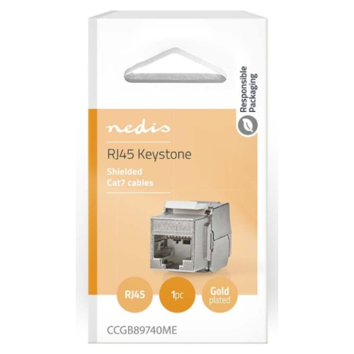 -Instalacija bez alata-Pogodno za neoklopljene CAT6 kablove U/UTP-Moze se montirati u Keystone panele do 24 porta ili zidne uticniceKeystone je standardizovani klik sistem za montazu prikljucaka, na primer, u zidne uticnice, izlazne kutije, montazne okvire, patch panele, DIN sine, itd. Keystone omoguc?ava da se lako realizuju veze na bilo kojoj zeljenoj lokaciji, bez potrebe za zavrtnjem ili lemljenjem. Moduli se kliknu u otvore i kablovi se mogu povezati.Ovaj Keistone modul je pogodan za oklopljene CAT7 kablove S/FTP.Sirina 17 mmVisina 23 mmDubina 38 mmTezina 24 gKonektor: pozlac?enDizajn adaptera: PravoBoja: sivaZastitni: SFTPMaterijal kuc?ista adaptera: MetalBroj proizvoda u pakovanju: 1 komKonektor A: RJ45 zenskiTip adaptera KeystoneCAT tip: CAT7