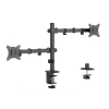 Podesiva dupla ruka monitora montirana na sto, 17”-32”Savršeno postavite ekranLagan i nagibni dizajn- Montaža za sto za monitor sa dvostrukom rukom za monitor- Ruke omogucavaju okretanje, proširenje, uvlačenje ili naginjanje vašeg ekrana i omogucavaju rotiranje ekrana iz pejzažnog u portretni režim itd.- Radi sa skoro svim LCD monitorima (max. 32")- Odvojene ruke omogucavaju poravnato montiranje monitora različitih veličina/brendova- Snažna stezaljka za radni sto ili otvor za lako i sigurno pričvršcivanje na vaš sto- Ugrađeno upravljanje kablovima za organizovan i uredan radni prostor- VESA kompatibilan (100 x 100 mm i 75 x 75 mm)Materijal: čelik, plastikaPovršinska obrada: praškasti premazBoja: CrnaPodržana veličina ekrana: 17" - 32"Kapacitet težine: 9 kg (po displeju)VESA nosač: 75 x 75, 100 x 100 mmOpseg nagiba: +45 ° ~ -45 °Opseg okretanja: +90 ° ~ -90 °Rotacija ekrana: +180 ° ~ -180 °Instalacija: Stezaljka za sto ili otvorMaks. Debljina stola: Stezaljka: 10 ~ 85 mm, Uložak: 10 ~ 40 mmUpravljanje kablovima: daNeto težina: 3,5 kg