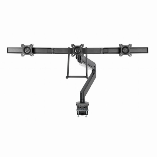 Montaža za sto za monitor sa jednom rukom za 3 monitoraRuka se rotira, izvlači i uvlači, naginje da promeni uglove čitanja-Traka za montiranje monitora za jedno pored drugog montiranje 3 monitora-Omogucava lako ergonomsko pozicioniranje za smanjeno opterecenje-Radi sa skoro svim LCD monitorima (maks. 27")-Izdržljive podesive gasne opruge pogodne za monitore od 1 - 6 kg-Snažna stezaljka za radni sto ili otvor za lako i sigurno pričvršcivanje na vaš sto-Ugrađeno upravljanje kablovima za organizovan i uredan radni prostor-VESA kompatibilan (100 x 100 mm i 75 x 75 mm)Materijal: aluminijum, čelik, plastikaPovršinska obrada: praškasti premazBoja: mat crnaPrilagodite veličinu ekrana: 17" ~ 27"Kapacitet težine: 1 ~ 6 kg (po displeju)VESA kompatibilan: 75 x 75, 100 x 100 mmOpseg nagiba: +5 ° ~ -15 °Opseg okretanja: +10 ° ~ -10 °Rotacija ekrana: +180 ° ~ -180 °Instalacija: Stezaljka za sto ili otvorMaks. Debljina stola: Stezaljka: 10 ~ 85 mm, Uložak: 10 ~ 40 mmUpravljanje kablovima: DaNeto težina: 8,58 kgDimenzije: 1330 x 709 x 770 mm