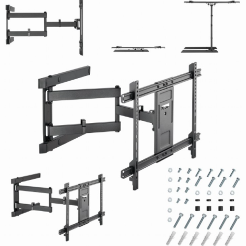 TV zidni nosač (full-motion), 37" - 80"Savršeno postavite ekranLagan i manevarski dizajn- Jednoručni zidni nosač za TV sa punim pokretom- Podržava vecinu LCD televizora od 37" - 80".- VESA kompatibilan, max. 600 mm x 400 mm- Omogucava okretanje do 180 stepeni i naginjanje za 18 stepeni- Udaljenost od zida: 76 - 620 mm- Praktičan integrisani nivo sa mehurićem za savršeno poravnanje- Uključuje sve potrebne materijale za ugradnjuMaterijal: čelik, plastika ABSPovršinska obrada: praškasti premazBoja: CrnaOdgovara veličini ekrana: 37" - 80"VESA kompatibilan: 200 x 200, 300 x 200, 300 x 300, 400 x 200, 400 x 300, 400 x 400, 600 x 400 mmKapacitet težine: 50 kgProfil: 76 ~ 620 mmOpseg nagiba: +3 ° ~ -15 °Opseg okretanja: +90 ° ~ -90 °Nivo ekrana: +3 ° ~ -3 °Montaža: čvrsti zid, dupli klin (406 mm)Upravljanje kablovima: daNeto težina: 7,3 kgDimenzije: 620 x 685 x 425 mm