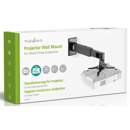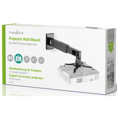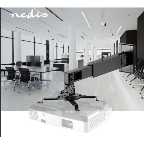 Držač projektora-Projekcija na kratkim dometima – za projektovanje slika na maloj udaljenosti do projekcijskog platna ili zida-Teleskopska ruka sa dizajnom stuba - omogucava savrseno pozicioniranje projektora-Jaka i izdrzljiva – da izdrzi tezinu projektora od 15 kg/33 lbs-Funkcionalnost nagiba - za najbolji ugao gledanja-Funkcionalnost okretanja - nudi maksimalnu fleksibilnost gledanja-Funkcionalnost rotacije - za optimalne uglove gledanja-4 podesive potporne ruke - da se s lakoc?om uklope u vecinu projektora i pricvrste projektor za stabilnu sliku-Integrisano upravljanje kablovima - da sve bude organizovanoOvaj Nedis zidni nosac za projektor kratkog dometa je savrsen za prikazivanje savrseno nagnutih i stabilnih slika za vecinu projektora kratkog dometa tezine do 15 kg/33 lbs. Napravljen je da projektoru pruzi fleksibilnost naginjanja, rotacije i okretanja kada je to potrebno. Teleskopska ruka sa dizajnom stuba omogucava vam da savrseno postavite projektor za optimalne uglove gledanja. Pogodne podesive potporne ruke odgovaraju vecini projektora kratkog dometa. Integrisano upravljanje kablovima odrzava uredan i cist izgled. Ukljucujuci sve potrebne materijale koji omogucavaju brzu i jednostavnu instalaciju, tako da se lako instalira.Sirina: 750 mmVisina: 165 mmDubina: 336 mmTezina: 2720 gBoja: crnaNagib: 30 °Materijal: celikPrimena za montazu: ZidFunkcionalnost: Full MotionRotirajuc?i: 0-360 °Broj krakova: 4Maksimalna tezina projektora: 15 kgRaspon rupa za montazu: 54-320 mmMinimalno rastojanje: 464 mmMaksimalno rastojanje: 607 mm