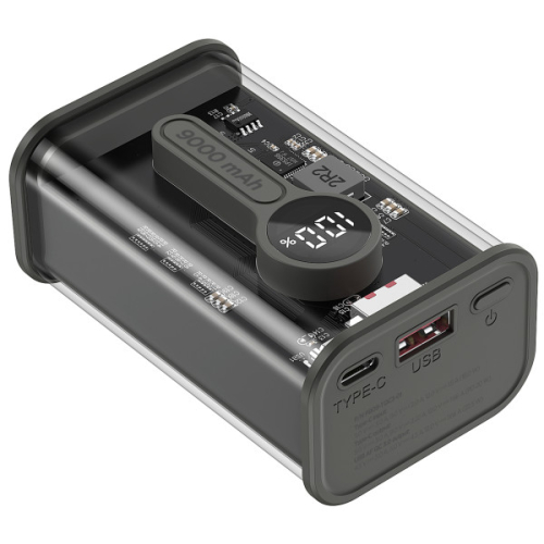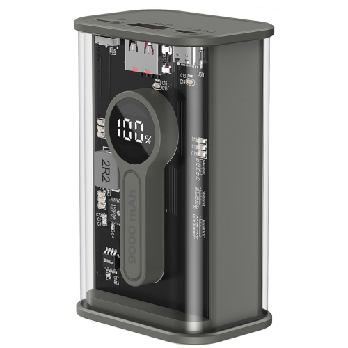 Transparentna baterija za brzo punjenje QC3.0, 9000 mAh, crnaPORTABLE POWERNapunite svoju opremu u pokretuDovoljno mocan za punjenje tableta- Kompaktna baterija kapaciteta 9000 mAh sa 2 USB porta- Pogodno za punjenje npr. pametne telefone ili tablete- Ugradjena zastita od kratkog spoja, prekomernog punjenja i prekomernog praznjenja- LCD indikator statusa baterijeBaterija:9000 mAh, Li-polimer 21700 x 2 kom (vreme punjenja do 5 sati)Ulaz tipa C:5V/3A, 9V/2A, 12V/1.5A (18W)Izlaz tipa C: 5.0V - 3.0A, 9.0V - 2.22A, 12.0V - 1,67 A (20W)USB AF QC 3.0 izlaz: 5.0V - 3.0A, 9.0V - 2.22A, 12.0V - 1,67 A (20W)Radna temperatura: 0-45 °CDimenzije: 54 x 36 x 86 mmNeto težina: 0,2 kg
