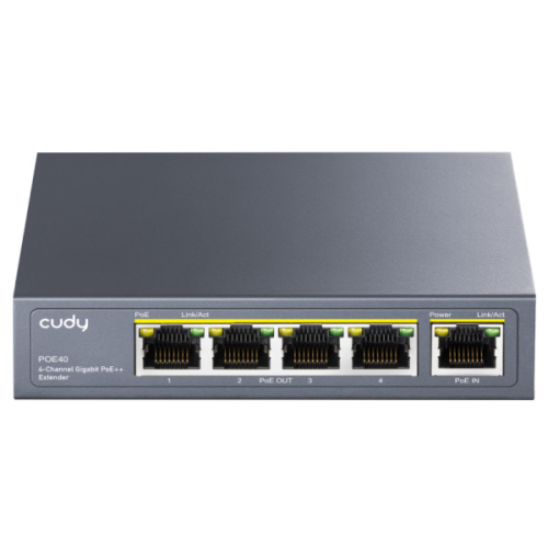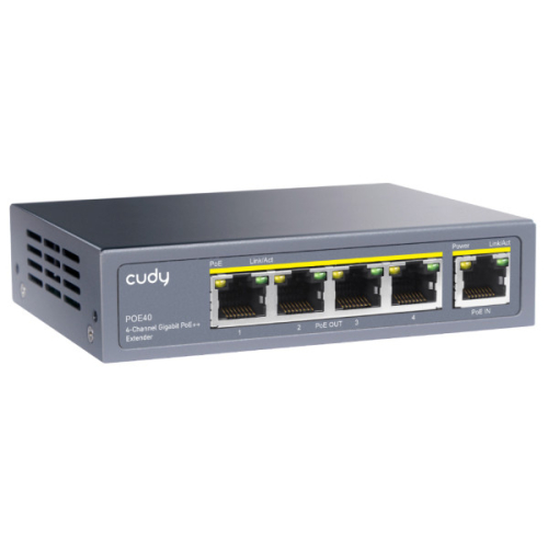 4-Channel Gigabit POE+ Extender, Model: POE40Kompatibilan sa: IEEE802.3af/802.3at/802.3bt,Jedan gigabitni PoE ulazni port (maksimalno 60 wat),Četiri gigabitna PoE izlazna porta (30 wat maksimalno po portu),Proširuje PoE signal za dodatnih 100 metara,Nije potrebno dodatno napajanje,Automatski detektuje PoE i ne-PoE opremu,Instalacija za sto ili zid,Metalno kućište, plug and play.Model: POE40Broj kanala: 1 (PoE IN) u 4 (PoE OUT)Brzina prolaza podataka: 10/100/1000 Mbps polu/pun dupleksUlaz za napajanje preko Etherneta: Dodela pinova i polaritet: I 1/2 (-), 3/6 (+) i 4/5 (+), 7/8 (-)Napajanje preko Etherneta: Dodela pinova i polaritet: 1/2 (+), 3/6 (-)Izlazna snaga: do 12W za 4 PSE ili 30W za 2 PSEIndikatori: LED indikatori se nalaze na RJ45 konektoruIndikator napajanja: PoE omogućenPowered success: PowerMrežni indikator: Link/AktKonektori: oklopljeni RJ-45, EIA 568A i 568BMrežni kablovi: zaštićena kategorija 5E (ili više)Dimenzije: 119mm k 85mm k 28mmMontaža: zid policeOkruženje: UnutrašnjostUslovi okoline: Radna temperatura okoline: 0 do 45CRadna vlažnost: maksimalno 90%, bez kondenzacijeTemperatura skladištenja: -40 do 70CVlažnost skladištenja: maksimalno 95%, bez kondenzacijeUsklađenost sa propisima: IEEE 802.3af (15.4W), IEEE 802.3at (30W), IEEE802.3at 4 para (60W)