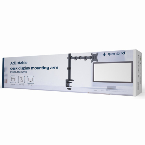 Držač za monitor sa jednom rukomRuka omogucava okretanje, proširenje, uvlačenje ili naginjanje vašeg ekrana i omogucava rotiranje ekrana iz pejzažnog u portretni režim itd.Kompatibilan sa skoro svim LCD monitorima (maks. 32").Snažna stezaljka za radni sto ili otvor za lako i sigurno pričvršcivanje na vaš sto.Ugrađeno upravljanje kablovima za organizovan i uredan radni prostor.VESA kompatibilan (100 x 100 mm i 75 x 75 mm).Materijal: čelik, plastika,Površinska obrada: praškasti premaz,Boja: crna fine teksture,Odgovara veličini ekrana: 17" - 32",Kapacitet težine: 9 kg,Vesa kompatibilan: 100x100, 75x75 mm,Opseg nagiba: +45 ~ -45,Opseg okretanja: +90 ~ -90,Rotacija ekrana: +180 ~ -180,Montaža: spojnica, stezaljka,Preporučena debljina radne površine: stezaljka: 10 ~ 85 mm. otvor: 10 ~ 40 mmUpravljanje kablovima: da,Neto težina: 2,7 kg,
