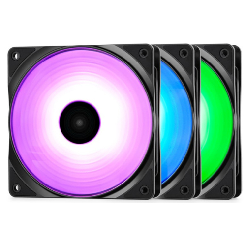 RF120-3 IN 1 DeepCool RF120-3IN1 trostruki PVM komplet ventilatora sadrži 18 RGB LED dioda sa 6 ultra-svetlih LED dioda na svakom ventilatoru koje nude spektakularno svetlo i odlično hlađenje.PRILAGODIVO RGB LED OSVETLJENJE Sa 6 ultra-svetlih RGB LED svetala, RF 120 obezbeđuje potpuno osvetljenje za vašu mašinu, postižuci magične svetlosne efekte sa kontrolama za više izbora i 3 različita režima, statičkog i višebojnog ciklusa.Dvosmerni kontroler (uključen) i softverska kontrola su dostupni za matične ploče koje podržavaju RGB SINC i 12V RGB 4-pinski port.Optimizovane performanse hlađenja. Uravnotežen protok vazduha i vazdušni pritisak dizajnirani za savršenu kompatibilnost sa vašim kucištem ili hladnjakom.Tihi rad RF 120 sposoban za PVM generiše ultra-nisku buku i smanjuje vibracije pomocu gumenog dizajna protiv vibracija.Dimenzije ventilatora: 120×120×25 mm (D׊×V),Neto težina: 468 g,Brzina ventilatora: 500~1500 RPM±10%,Protok vazduha ventilatora: 56,5 CFM,Vazdušni pritisak ventilatora: 1,66 mmAq, Buka ventilatora: ?27 dB(A),Konektor ventilatora: 4-pina,Tip ležaja: Hidro ležaj,Nominalni napon: 12 VDC,Nazivna struja ventilatora: 0.11 A±10%,Potrošnja energije: 1,32W,LED: RGB LED,LED konektor: 4-pinski (+12V--G-R-B),LED nazivni napon: 12 VDC,LED nazivna struja: 0,12 A±10% LED,Potrošnja energije: 1,44 W.