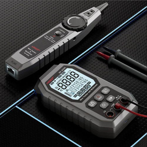 Napredna tehnologija za pracenje žice. Iskusite efikasnost bez premca u pracenju kablova sa našom najsavremenijom tehnologijom za pracenje žica. Noiafa NF-8509 koristi najsavremenije karakteristike za preciznu identifikaciju i pracenje kablova kroz zidove, plafone i podove, omogucavajuci vam da bez napora odredite njihovu tačnu lokaciju.Besprekorna multifunkcionalnost. Opremljen integrisanim multimetrom, ovaj uređaj vam omogucava da sa lakocom izvršite različita električna merenja. Od napona i otpornosti do kontinuiteta i testiranja dioda, NF-8509 pruža sveobuhvatno rešenje, smanjujuci potrebu za više alata u vašem kompletu alata.Testiranje mrežnog kabla RJ45. Oslobodite snagu testiranja mrežnih kablova! NF-8509 vam omogucava da sprovedete sveobuhvatne testove na RJ45 eternet kablovima, uključujuci test kontinuiteta kabla, test dužine kabla, PoE test i fleš porta.Precizna merenja su laka. Iskusite električna merenja bez problema sa intuitivnim interfejsom uređaja i preciznom preciznošcu merenja. Naša funkcionalnost multimetra obezbeđuje pouzdana očitavanja, omogucavajuci vam da pouzdano rešavate probleme u električnim krugovima.Detekcija napona bez kontakta. Sa svojom funkcijom za beskontaktnu detekciju napona, NF-8509 pruža dodatni nivo sigurnosti. Otkrijte bez napora prisustvo napona bez potrebe za fizičkim kontaktom, obezbeđujuci iskustvo bez rizika tokom pracenja kablova i električnih inspekcija.Jasan LCD ekran sa pozadinskim osvetljenjem. Uživajte u poboljšanoj vidljivosti čak iu uslovima slabog osvetljenja uz LCD ekran sa pozadinskim osvetljenjem. Jasan i lak za čitanje ekran pruža trenutni pristup kritičnim informacijama, čineci vaše pracenje žica i električne zadatke efikasnijim i štede vreme.Dugotrajan radni vek baterije. Recite zbogom čestim promenama baterije. Noiafa NF-8509 je dizajniran za produženu upotrebu, obezbeđujuci dugotrajan vek baterije za podršku vašim projektima tokom celog dana.Test mapiranja žice: DaSkeniranje žice: RJ45 1969ft / ??600mTest dužine žice: 16 - 656ft (+-9.8ft) / 5 - 200m (+-3m)Test treperenja porta: 32.8ft (10m) / 328(100m) / 3.280ft (1.000m)PoE: detekcija napajanja sa 4 jezgra / 8 jezgara. Detekcija PoE napona Test kontinuiteta: 1) Detektuje performanse povezivanja žica i različitih provodnika. Zujalica ce se oglasiti kada je otpor ispod 50O. 2) Identifikujte polaritet i pad napona dioda (0-3,3V)NCV funkcija: Induktivni detektor napona (0-4 nivoa)Merenje otpora: 600O - 60MO (tačnost:+-1,0%+5)Merenje AC/DC napona: 600mV - 610V (DC tačnost: +-0,5% + 3; AC tačnost: +-0,5%+3)AC/DC merenje: 1mA - 3A DC (tačnost: +-0,8% + 3)Snaga: 3,7V/1,500mA litijumska baterijaPrikaz temperature okoline: DaDimenzije: 5,4 x 3,0 x 1,3 inča / 137,5 x 76 x 34 mmRECEIVERLED svetlo: DaFunkcija telefona: DaSnaga: DC9V (ekskluzivno)Max. radna struja: <=150mADimenzije: 8,1 x 1,5 x 1,1 inča / 204,9 x 38 x 29 mm