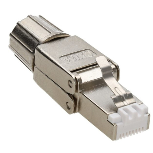 RJ-45 konektor STP kat. 6a – fully shielded (oklopljen) 8P8C, za direktnu terminaciju bez alata na UTP/STP kabl patch (licnasti) ili punog preseka, 500MHz – 10GbE, sa metalnom navlakom koja fiksira kabl. Lako se spaja bez alata.Direktan završetak na Cat.6a, Cat. 6, kablovibrza i laka instalacija bez alatapovezivanje IP kamera i bežičnih uređaja bez potrebe za korišcenjem utičnica i patch kablovapotreban prostor za ugradnju 50 mmomogucava prenos svih brzih protokola uključujuci 10GBASE-T unutar sistema Cat. 6Agarantuje propusni opseg od 500 MHz unutar sistema Cat.6Asavršeno zašticen od preslušavanja vanzemaljaca i elektromagnetnih smetnji
