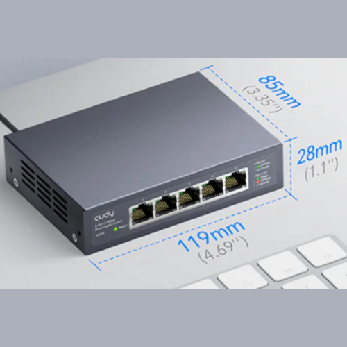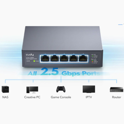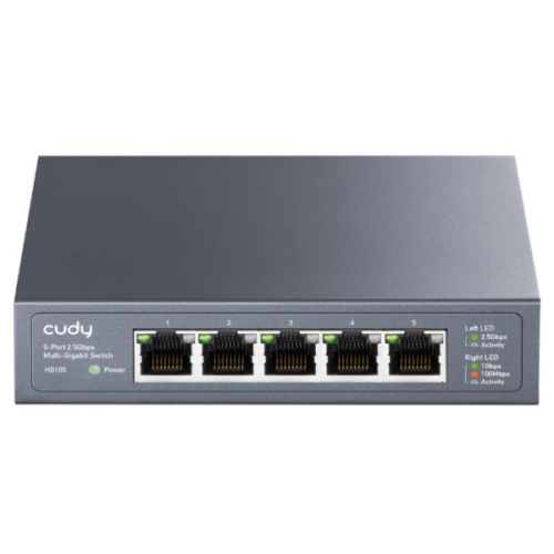 Prekidač sa 5 portova 2,5G sa metalnim kucištem idealan za proširenje žične mreže od 2,5Gbps za NAS ili zahteve koji zahtevaju intenzivnu propusnost.5× 2.5G Ethernet portovaIGMP njuškanje, prevencija petljeMaksimalna snaga 10,5 V, mirovanje 4,7 V119×85×28 mm (4,69×3,35×1,1")Stoni računar, montiranje na zidMetalno kucišteVerzija modela HS105 1.0Protokoli 802.3 Protokoli: 802.3k kontrola protoka802.3u 100 Mbps preko Tvisted Pair802.3ab 1 Gbps preko Tvisted Pair802.3bz 2,5/5 Gbps preko Tvisted PairNapredno IGMP SnoopingPrevencija petljeLoop DetectionMemorija/Stroage Flash/ROM 1 MB (8 Mbit) NORInterfejsi Fizička dugmad: Dugme za resetovanje2.5G RJ45 portovi: 5LED: Snaga; Brzina/Link/ACT svakog Ethernet portaUlaz za napajanje: DC JackPerformanseBrzina bakra i rastojanje Cat. Kabl od 5 ili više: 100 metara pri 100 MbpsCat. 5e ili viši kabl: 100 metara na GigabituCat. 5e kabl: 50 metara pri 2,5 GbpsCat. 6 ili veci kabl: 100 metara pri 2,5 GbpsTabela MAC adresa: 8192Maksimalni kapacitet prebacivanja: 25 GbpsMaksimalna brzina prosleđivanja: 18,6 MppsJumbo okvir: 15 KBBafer paketa: 4 MbitaSnaga Basic Power Saving: TačnoPower Methods: DCDC: 12V 1AMaksimalna potrošnja energije (W) 10,5WPotrošnja energije u stanju mirovanja (W) 4,7WPouzdanost Metode uzemljenja: Tačka uzemljenjaZaštita od munje/prenapona: 2kVESD zaštita vazduha: 8kVESD kontaktna zaštita: 4kVRadna temperatura okoline: 0 C ~ 40 C (32 F ~ 104 F)Temperatura skladištenja: -40 C ~ 70 C (-40 F ~ 158 F)Radna vlažnost: 10% ~ 90% bez kondenzacijeVlažnost skladištenja: 5% ~ 90% bez kondenzacijeSadržaj paketa: Glavni proizvod, Adapter za napajanje, Uputstvo za instalaciju, Eternet kabal, Oprema za montiranjeMehanička instalacija: Desktop, Montaža na zidMaterijal kucišta: MetalDimenzije: 119×85×28 mm; 4,69×3,35×1,1 inčaInformacije o porudžbiniMaloprodajno pakovanje: Dimenzije 165×123×60 mm; 6,5×4,84×2,36 inčaNeto težina kartona 9,8 kg (21,61 lbs)Bruto težina kartona 10,3 kg (22,71 lbs)Karton Dimenzija 376×264×338 cm