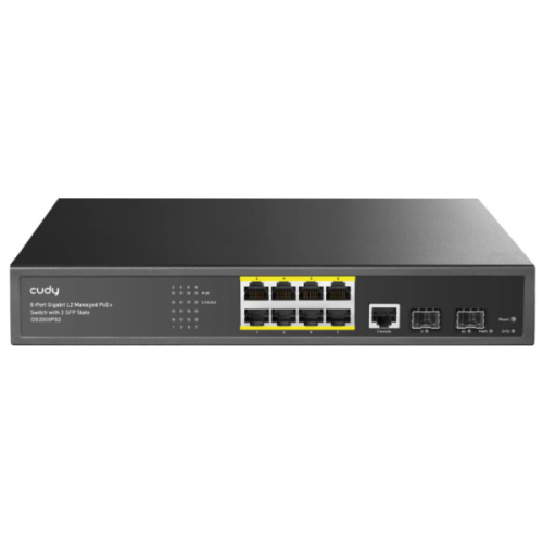 8-GbE, 2-SFP, Laier 2 PoE prekidač montiran u rack sa napajanjem od 130 W i tihim sistemom hlađenja.8× GbE sa 802.3at/af Mode A PoE2× SFP130V napajanjeL2 funkcije upravljanjaDesktop, Rack-Mount261×181×44 mm (10,28×7,13×1,73”)Verzija modela GS2008PS2 1.0Protokoli 802.3 Protokoli: 802.3i 10 Mbps preko Tvisted Pair802.3u 100 Mbps preko Tvisted Pair802.3ab 1 Gbps preko Tvisted Pair802.3z 1,25 Gbps preko optičkog kabla802.3k kontrola protoka802.3af PoE802.3at PoE802.1 Protocols 802.1d: STP802.1s: MSTP802.1p: LAN Laier 2 Kos/Cos protokol u vezi sa prioritetom saobracaja802.1k: Rad VLAN mosta802.1s: MSTP802.1v: RSTP802.1ab: LLDP/LLDP-MED802.1k autentikacija korisnikaInterfejsi Fizička dugmad: Dugme za resetovanjeEthernet portovi: 8× GbEUplink Ethernet portovi: 2× SFPKonzolni portovi: 1× RJ45LED: Snaga, Sistem, Link/ACT svakog Ethernet porta, PoE status svakog PoE portaUlaz za napajanje: AC UlazPerformanseBrzina bakra i rastojanje: Cat. 3 ili veci kabl: 100 metara pri 10 MbpsCat. Kabl od 5 ili više: 100 metara pri 100 MbpsCat. 5e ili viši kabl: 100 metara na GigabituMaksimalna brzina prosleđivanja: 14,88 MppsMaksimalni kapacitet prebacivanja: 20 GbpsTabela MAC adresa: 8192VLAN: 4096Jumbo okvir: 9,6 KBBafer paketa: 4 MbitSnagaNačini napajanja: ACAC: 100-240V 50/60HzPotrošnja energije u stanju mirovanja (W) 12Maksimalna potrošnja energije (W) 130PouzdanostMetode uzemljenja: Utikač sa tri zupcaRadna temperatura okoline: -10~50 C (14~122 F)Temperatura skladištenja: -40 ~ 70 C (-40 ~ 158 F)Radna vlažnost: 10%~90% bez kondenzacijeVlažnost skladištenja: 5%~95% bez kondenzacijeMehanička instalacija: Desktop; Montaža na rack preko nosačaMaterijal kucišta: MetalDimenzije: 261×181×44 mm; 10,28×7,13×1,73 inčaSadržaj paketa: Glavni proizvod, Kabl za napajanje, Oprema za montiranje, Uputstvo za instalacijuInformacije o poručivanjuKarton Neto težina 15,9 kg (35,05 lbs)Bruto težina kartona 16,9 kg (37,26 lbs)